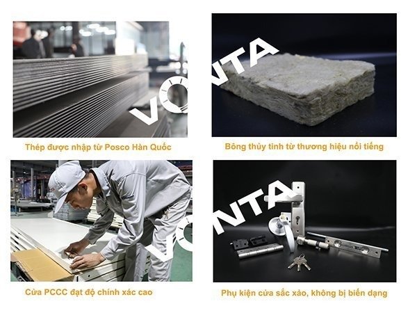 Thứ nhất, phần thép của cửa PCCC thương hiệu Vonta đều nhập của Posco Hàn Quốc, vì vậy các sản phẩm của Công ty ít nhất 30 năm đều không bị gỉ, bền ngang inox. Độ cứng của thép tốt hơn rất nhiều so với các đơn vị khác tại Việt Nam hiện đang sử dụng thép của Trung Quốc.