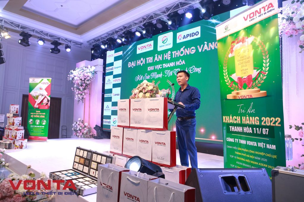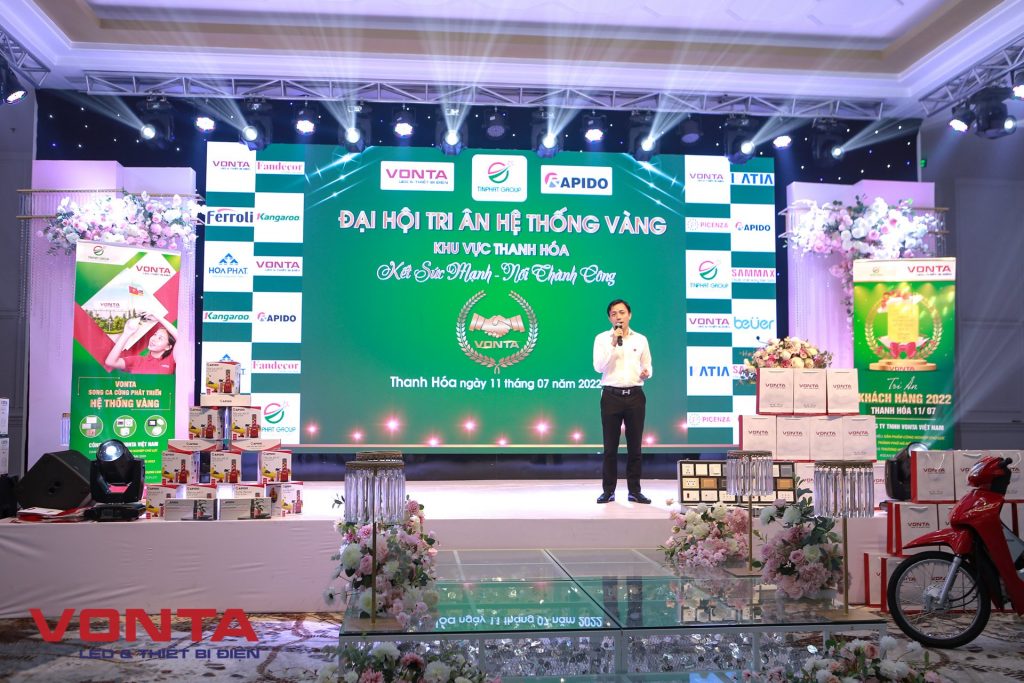 Tối 11/7 vừa qua, Công ty TNHH VONTA Việt Nam đã phối hợp cùng NPP Tín Phát tổ chức chương trình Hội Nghị Tri Ân Hệ thống vàng khu vực Thanh Hóa 2022 tại Trung tâm hội nghị Đại Việt Palace.