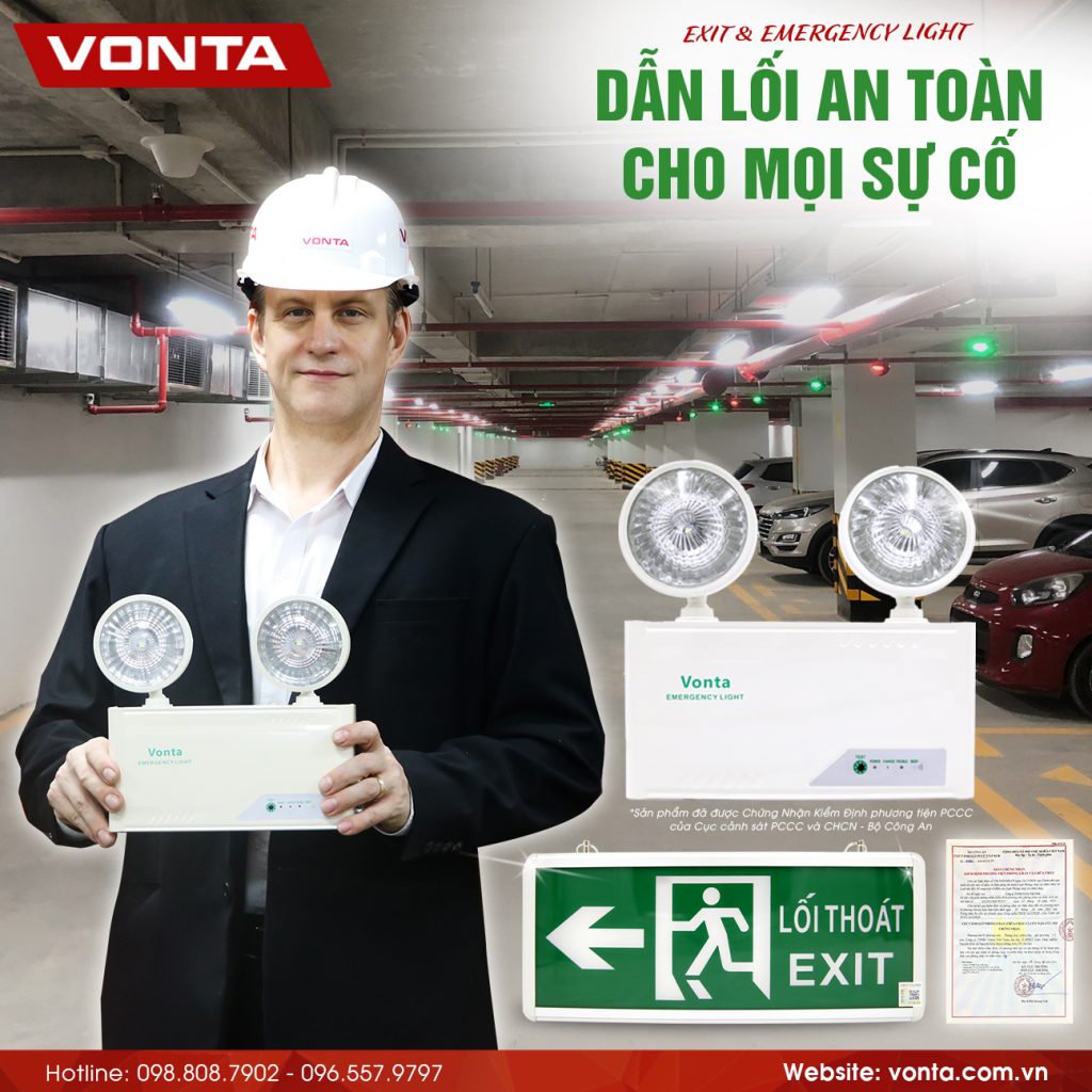 Để khắc phục rủi ro đó – Đèn EXIT & Đèn chiếu sáng sự cố VONTA được ra đời với những ưu điểm nổi trội :