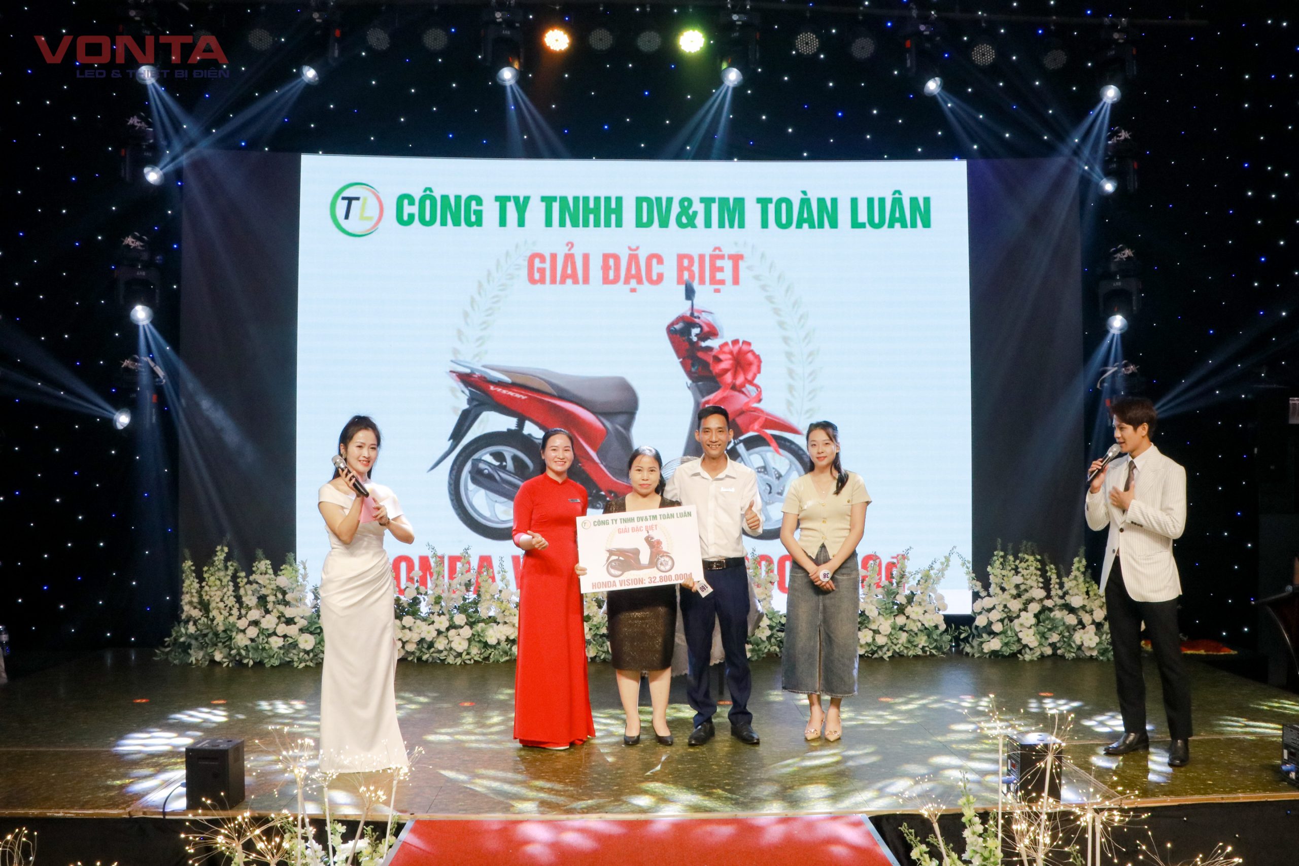 Điểm nhấn của chương trình là phần Quay Số May Mắn công khai – minh bạch của buổi Gala – mang đến rất nhiều phần thưởng có giá trị lớn cho các khách mời tham dự – trong đó 2 giải thưởng may mắn đặc biệt nhất: là 01 chỉ vàng 9999 trị giá 8,400,000đ của Vonta Việt Nam và 01 xe máy Honda Vision 2024 trị giá hơn 34 triệu đồng đã tìm được chủ nhân đặc biệt nhất trong buổi tiệc đầy cảm xúc.