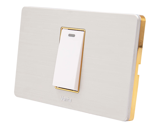 Dòng công tắc ổ cắm Series V05 VONTA mặt nhôm phay xước của không chỉ đẹp mà còn tạo điểm nhấn hoàn hảo cho các căn hộ hiện đại. Với thiết kế màu nhôm bạc kết hợp cùng viền vàng hoặc viền bạc sang trọng, sản phẩm này đem lại vẻ đẹp tinh tế, phù hợp với mọi không gian sống và làm việc ngày nay.