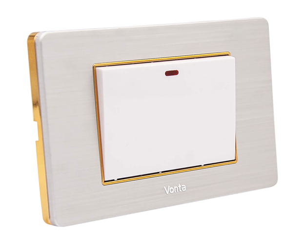 Dòng công tắc ổ cắm Series V05 VONTA mặt nhôm phay xước của không chỉ đẹp mà còn tạo điểm nhấn hoàn hảo cho các căn hộ hiện đại. Với thiết kế màu nhôm bạc kết hợp cùng viền vàng hoặc viền bạc sang trọng, sản phẩm này đem lại vẻ đẹp tinh tế, phù hợp với mọi không gian sống và làm việc ngày nay.