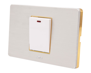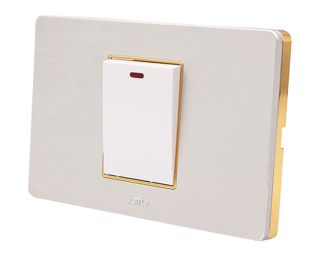 Dòng công tắc ổ cắm Series V05 VONTA mặt nhôm phay xước của không chỉ đẹp mà còn tạo điểm nhấn hoàn hảo cho các căn hộ hiện đại. Với thiết kế màu nhôm bạc kết hợp cùng viền vàng hoặc viền bạc sang trọng, sản phẩm này đem lại vẻ đẹp tinh tế, phù hợp với mọi không gian sống và làm việc ngày nay.