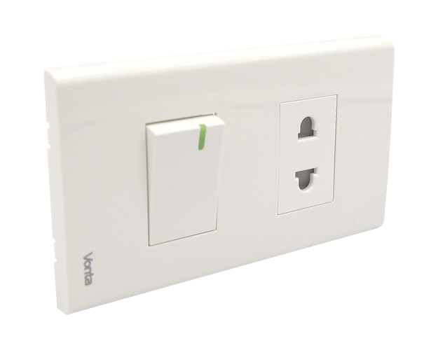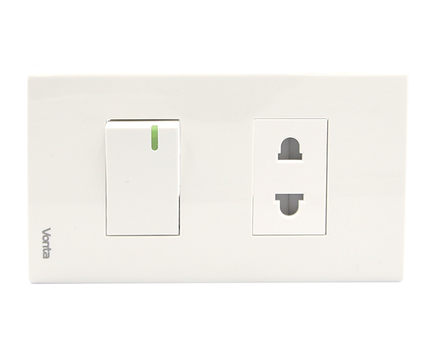 – Thiết kế ổ cắm và công tắc đơn giản và tinh tế với mặt ngoài bóng với dòng chữ Vonta, tạo điểm nhấn thẩm mỹ.