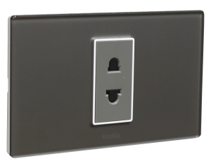 – Mặt che độc đáo với thiết kế khung viền dày chắc chắn, bề mặt phẳng mượt mà. Kết cấu tiếp xúc ổ cắm 2 chấu phù hợp với hầu hết mọi loại phích cắm của Việt Nam.