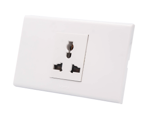 – Mặt che độc đáo với thiết kế khung viền dày chắc chắn, bề mặt phẳng mượt mà. Kết cấu tiếp xúc ổ cắm 3 chấu đa điểm hình cánh cung phù hợp với mọi loại phích cắm.