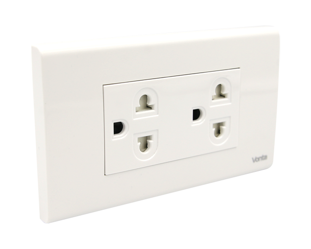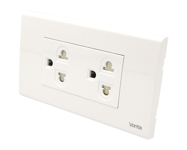 – Thiết kế ổ cắm đôi đơn giản và tinh tế với mặt ngoài bóng với dòng chữ Vonta, tạo điểm nhấn thẩm mỹ.