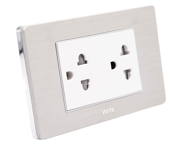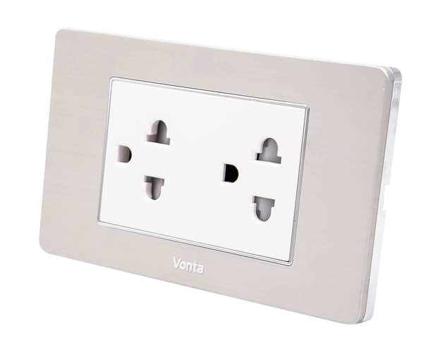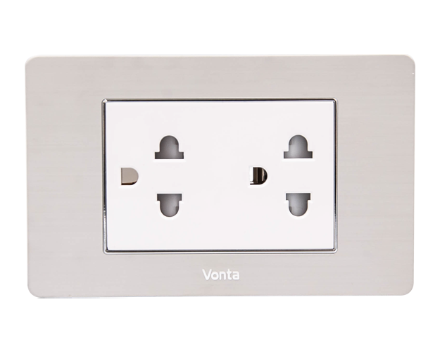 Dòng công tắc ổ cắm 3 chấu Series V05 VONTA mặt nhôm phay xước của không chỉ đẹp mà còn tạo điểm nhấn hoàn hảo cho các căn hộ hiện đại. Với thiết kế màu nhôm bạc kết hợp cùng viền vàng hoặc viền bạc sang trọng, sản phẩm này đem lại vẻ đẹp tinh tế, phù hợp với mọi không gian sống và làm việc ngày nay.