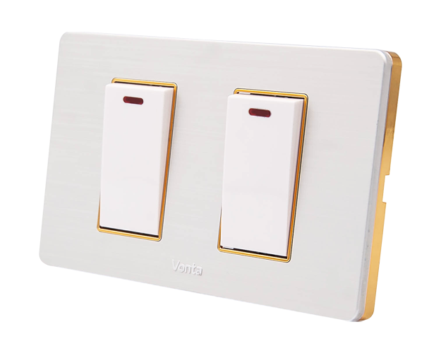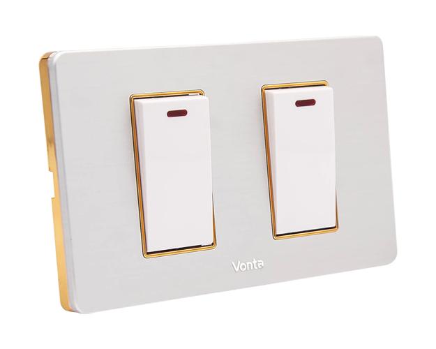 Dòng công tắc ổ cắm Series V05 VONTA mặt nhôm phay xước của không chỉ đẹp mà còn tạo điểm nhấn hoàn hảo cho các căn hộ hiện đại. Với thiết kế màu nhôm bạc kết hợp cùng viền vàng hoặc viền bạc sang trọng, sản phẩm này đem lại vẻ đẹp tinh tế, phù hợp với mọi không gian sống và làm việc ngày nay.