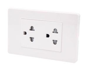 – Mặt che độc đáo với thiết kế khung viền dày chắc chắn, bề mặt phẳng mượt mà. Kết cấu tiếp xúc ổ cắm 3 chấu phù hợp với hầu hết mọi loại phích cắm của Việt Nam.