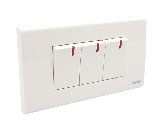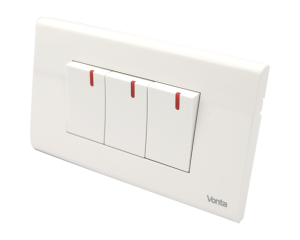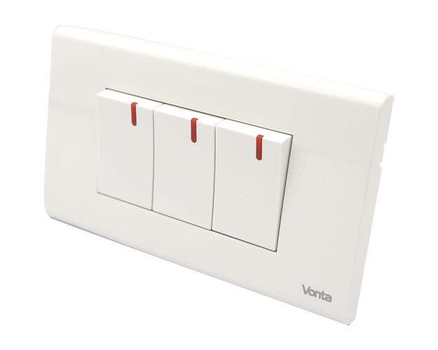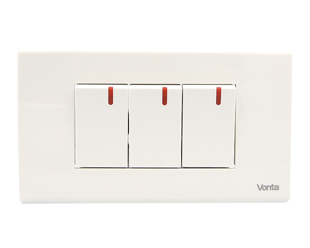 – Thiết kế công tắc ba đơn giản và tinh tế với mặt ngoài bóng với dòng chữ Vonta, tạo điểm nhấn thẩm mỹ.
