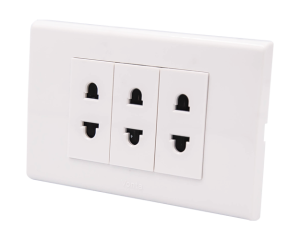 – Mặt che độc đáo với thiết kế khung viền dày chắc chắn, bề mặt phẳng mượt mà. Kết cấu tiếp xúc ổ cắm 2 chấu phù hợp với hầu hết mọi loại phích cắm của Việt Nam.