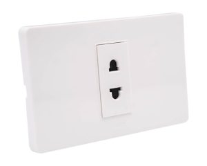 – Mặt che độc đáo với thiết kế khung viền dày chắc chắn, bề mặt phẳng mượt mà. Kết cấu tiếp xúc ổ cắm 2 chấu phù hợp với hầu hết mọi loại phích cắm của Việt Nam.