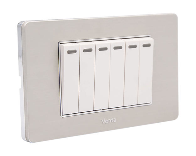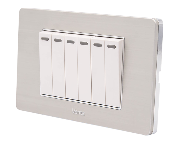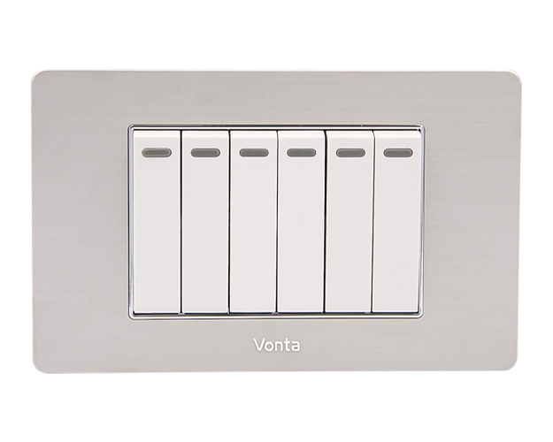Dòng công tắc ổ cắm Series V05 VONTA mặt nhôm phay xước của không chỉ đẹp mà còn tạo điểm nhấn hoàn hảo cho các căn hộ hiện đại. Với thiết kế màu nhôm bạc kết hợp cùng viền vàng hoặc viền bạc sang trọng, sản phẩm này đem lại vẻ đẹp tinh tế, phù hợp với mọi không gian sống và làm việc ngày nay.