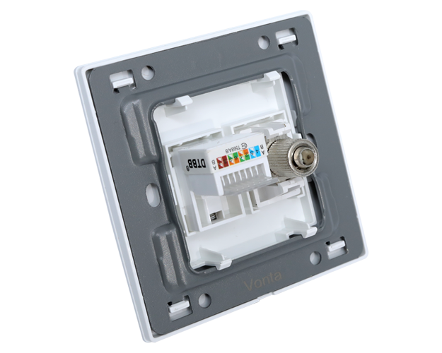 – Sản phẩm Ổ cắm WHV2KJ-TV-PC VONTA tích hợp ổ cắm kết nối TV và ổ cắm dây máy tính làm tăng tính tiện lợi đa dụng giúp việc cắm và truyền tải thông tin một cách dễ dàng.