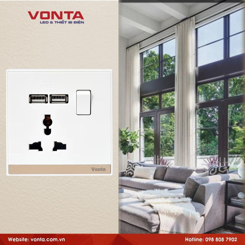 Dòng sản phẩm Công tắc ổ cắm VONTA Series WH768 hoàn toàn mới với thiết kế thanh lịch, đường nét tinh tế sắc nét, tích hợp linh hoạt kết hợp giữa công tắc điện + ổ cắm điện đa năng + 2 ổ cắm USB. Sự tích hợp thông minh này không chỉ tối ưu hóa không gian mà còn mang lại sự tiện dụng tối đa cho người dùng. Phù hợp với mọi thiết kế nội thất, từ phong cách hiện đại đến truyền thống, WH768-13M-2USB đáp ứng đa dạng nhu cầu sử dụng điện trong cuộc sống hàng ngày.