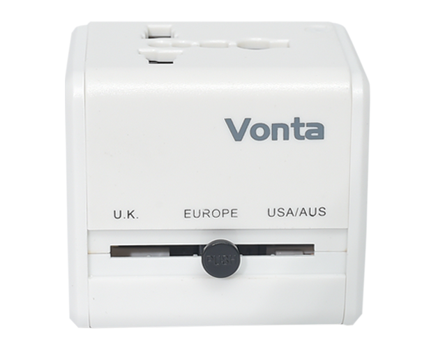 – Đầu nối chuyển đổi đa năng USB của Vonta được chế tạo từ nhựa ABS cao cấp, sản phẩm không chỉ bền bỉ mà còn có khả năng chống vỡ vượt trội, đảm bảo tuổi thọ sử dụng lâu dài. Vẻ ngoài tinh tế và sang trọng sản phẩn của Vonta còn mang đến cho người tiện năng trong sử dụng. Đặc biệt, với thiết kế 3 đầu chuyển đổi UK, EUROPE, USA, AUS chỉ cần 1 nút bấm bên hông.