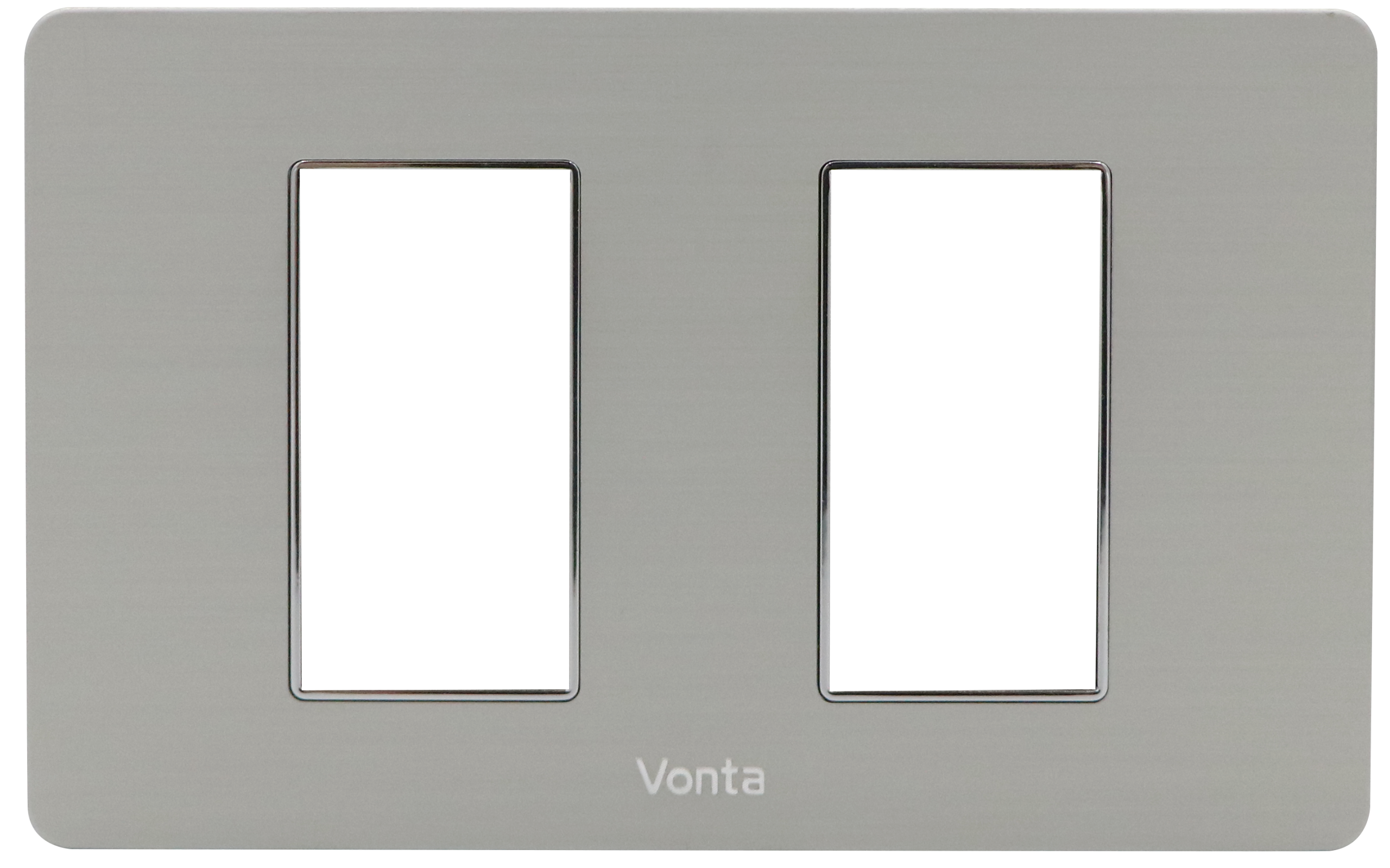 - Mặt công tắc ổ cắm có thiết kế màu nhôm bạc kết hợp với viền bạc sang trọng được nhấn xung quanh cạnh lắp hạt. Đây là gam màu của sự sang trọng phù hợp với mọi không gian sống và làm việc hiện đại ngày nay