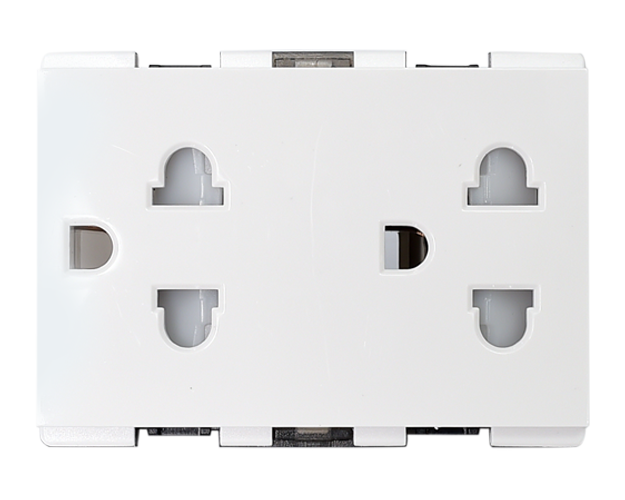 - Thiết kế chủ đạo là màu trắng, bóng bẩy tạo độ hài hòa cho mọi không gian công trình, mang một nét hài hòa cho không gian nội thất. Ổ cắm đôi 3 chấu liền thân 16A, dễ dàng lắp đặt, có độ bền cao, chất lượng bảo đảm.
