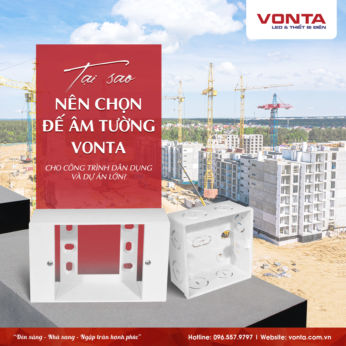 Vậy đâu là lựa chọn lý tưởng? Đế âm tường VONTA – sản phẩm đang được đông đảo kỹ sư, nhà thầu và người tiêu dùng tin dùng cho cả công trình dân dụng lẫn dự án lớn.