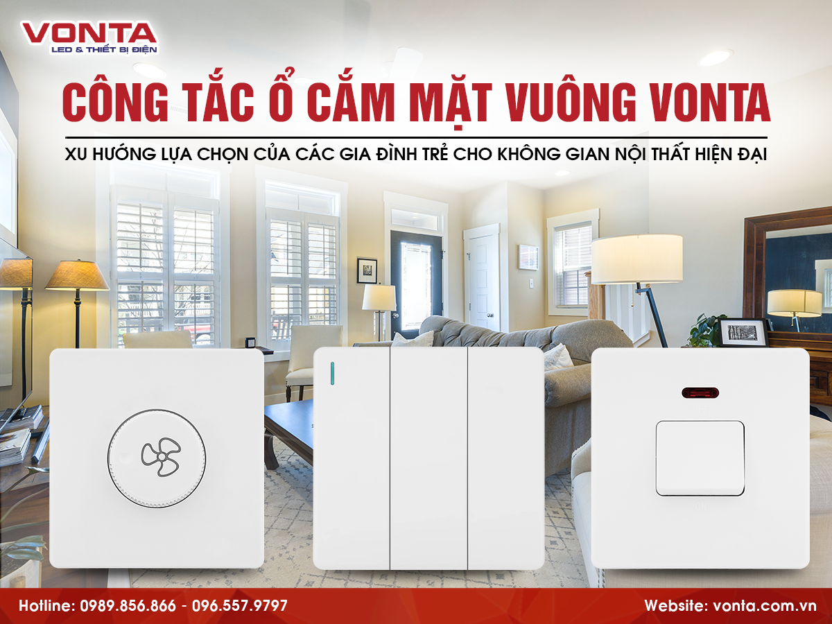 Công tắc ổ cắm mặt vuông VONTA – xu hướng của nội thất hiện đại