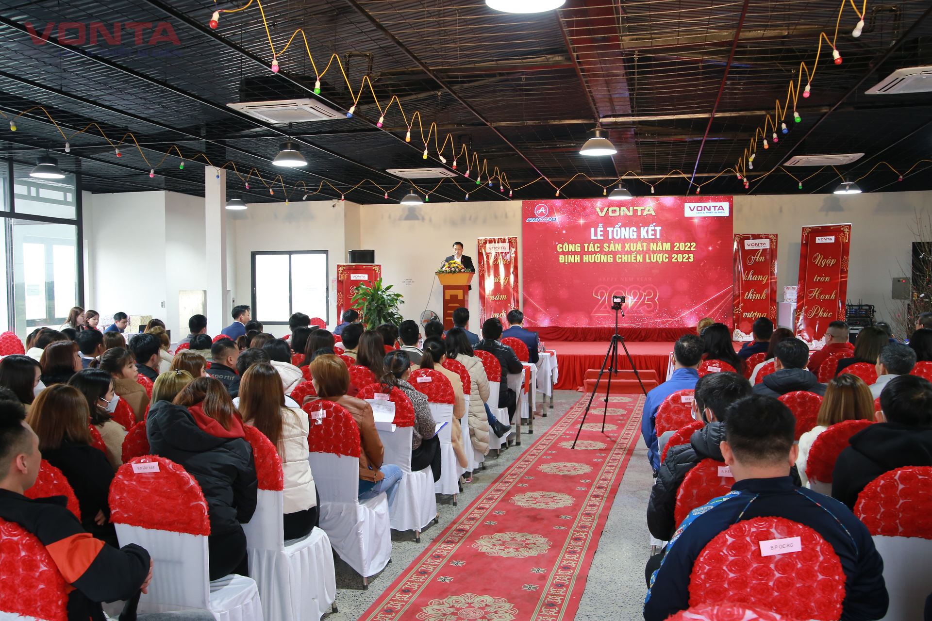Ngày 17/1/2023 vừa qua, Công ty TNHH VONTA Việt Nam đã tổ chức trang trọng buổi Lễ tổng kết công tác sản xuất năm 2022 và Mục tiêu chiến lược 2023 tại nhà máy VONTA Vân Nội, Đông Anh, HN, Ban lãnh đạo và toàn thể cán bộ công nhân viên đang làm việc tại Công ty.