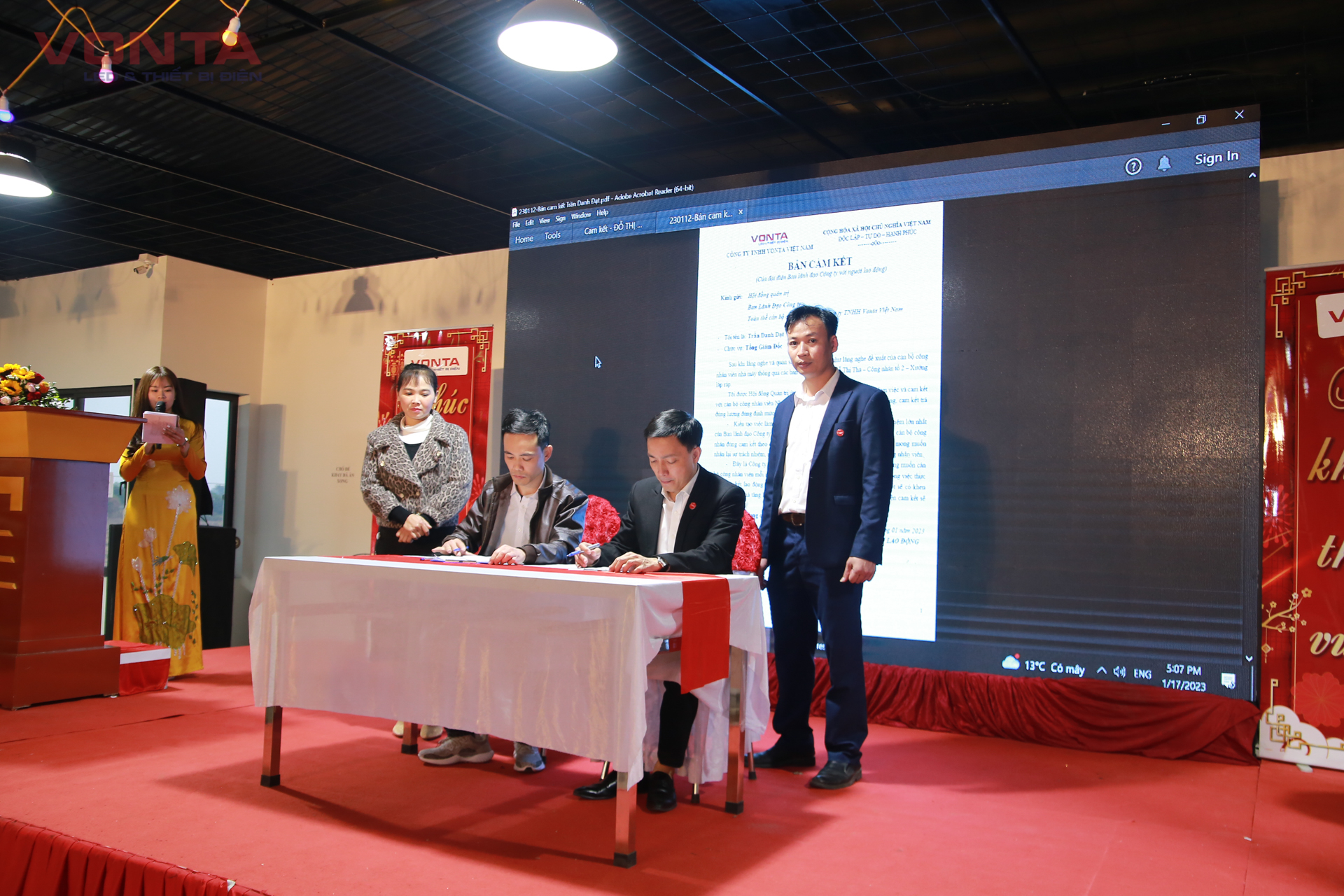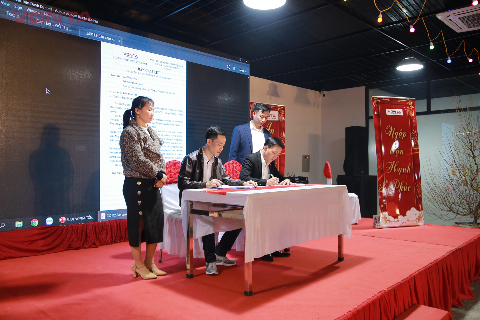 Không dừng lại ở lời nói, Công ty TNHH VONTA Việt Nam đã biến lời hứa thành hành động bằng việc kí cam kết giữa người lao động và doanh nghiệp. Việc làm này có ý nghĩa rất quan trọng, thể hiện sự tôn trọng, sự nghiêm túc của cả hai bên. Trong đó, doanh nghiệp cam kết nghiêm túc làm đúng những gì đã cam kết với người lao động, giúp người lao động yên tâm làm việc. Ngược lại, người lao động cũng thể hiện sự quyết tâm, nghiêm túc khi làm việc, cống hiến tại doanh nghiệp.
