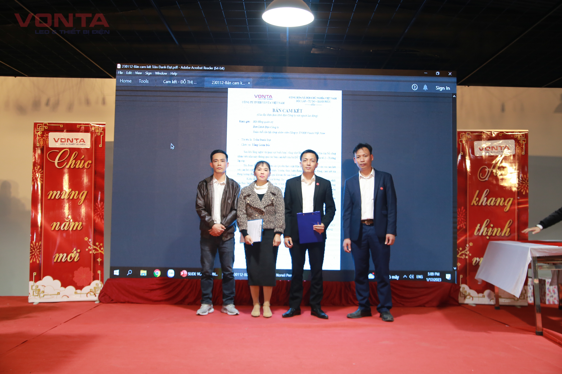 Sau phần cam kết, Ban lãnh đạo đã có phần tri ân, khen thưởng những cá nhân, bộ phận có thành tích xuất sắc để tạo động lực cho một năm mới thành công hơn nữa. Buổi lễ kết thúc bằng bữa tiệc tất niên thân mật, ấm cúng với nhiều tiết mục văn nghệ được các công nhân, cán bộ nhân viên tự chuẩn bị và biểu diễn, cũng như các phần quà giá trị trong chương trình Bốc thăm trúng thưởng.
