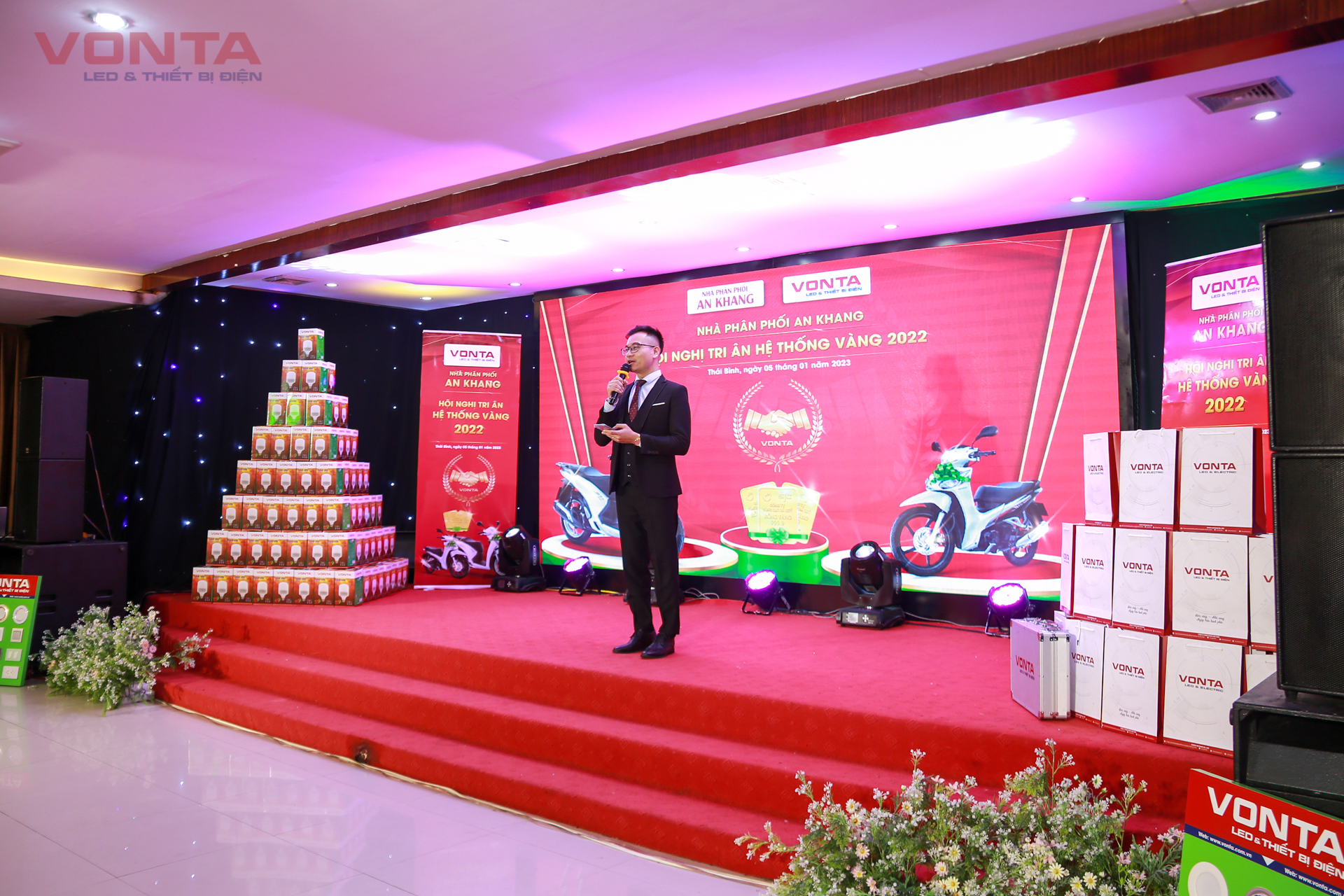 Chương trình đã vinh dự chào đón sự tham gia của gần 100 đại lý, keyshop, thầu thợ lớn của NPP An Khang tại Thái Bình về tham dự, cùng lắng nghe những chia sẻ, định hướng và đón nhận sự vinh danh của Công ty TNHH VONTA Việt Nam sau những đóng góp chung tay cùng Hệ thống vàng năm vừa qua