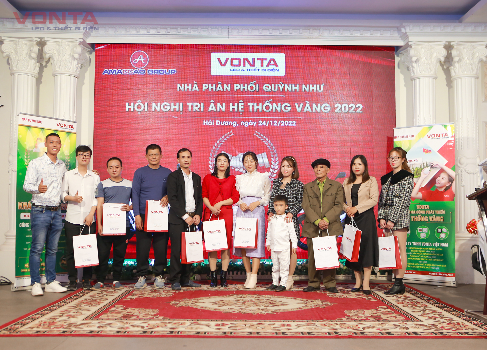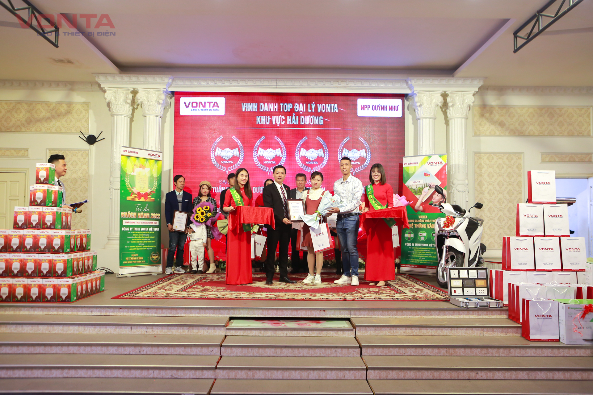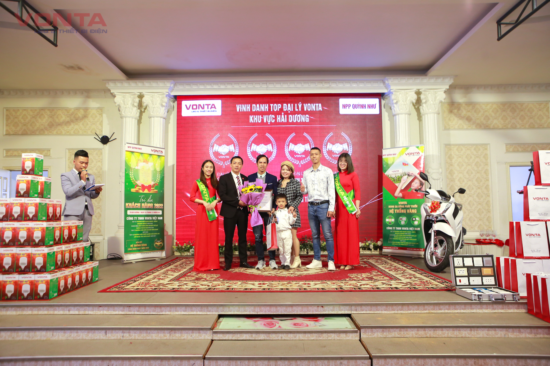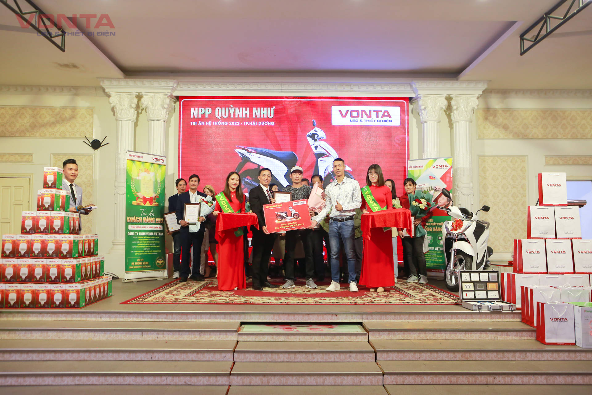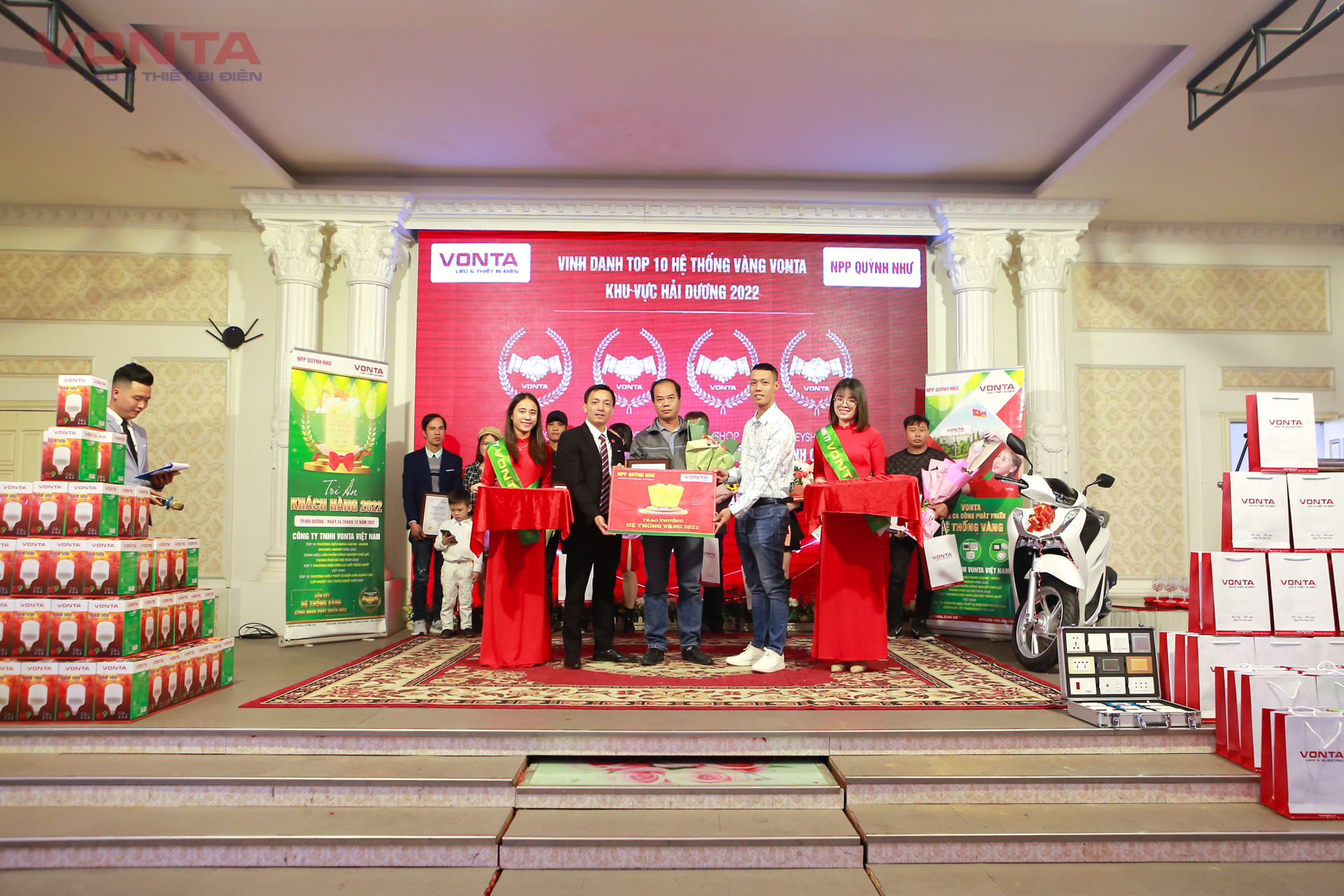 Tại buổi lễ, Công ty TNHH VONTA Việt Nam và NPP Quỳnh Như đã vinh danh trao – chứng nhận cũng như quà tặng Vàng cho các đại diện Top Hệ Thống Vàng, Đại Lý Vonta tại Hải Dương trong năm 2022. Trong đó đặc biệt đã có đại lý xuất sắc được vinh danh Top Hệ thống vàng 6 Sao và đón nhận giải thưởng cực lớn: 01 xe Honda SH & 1 cây vàng.