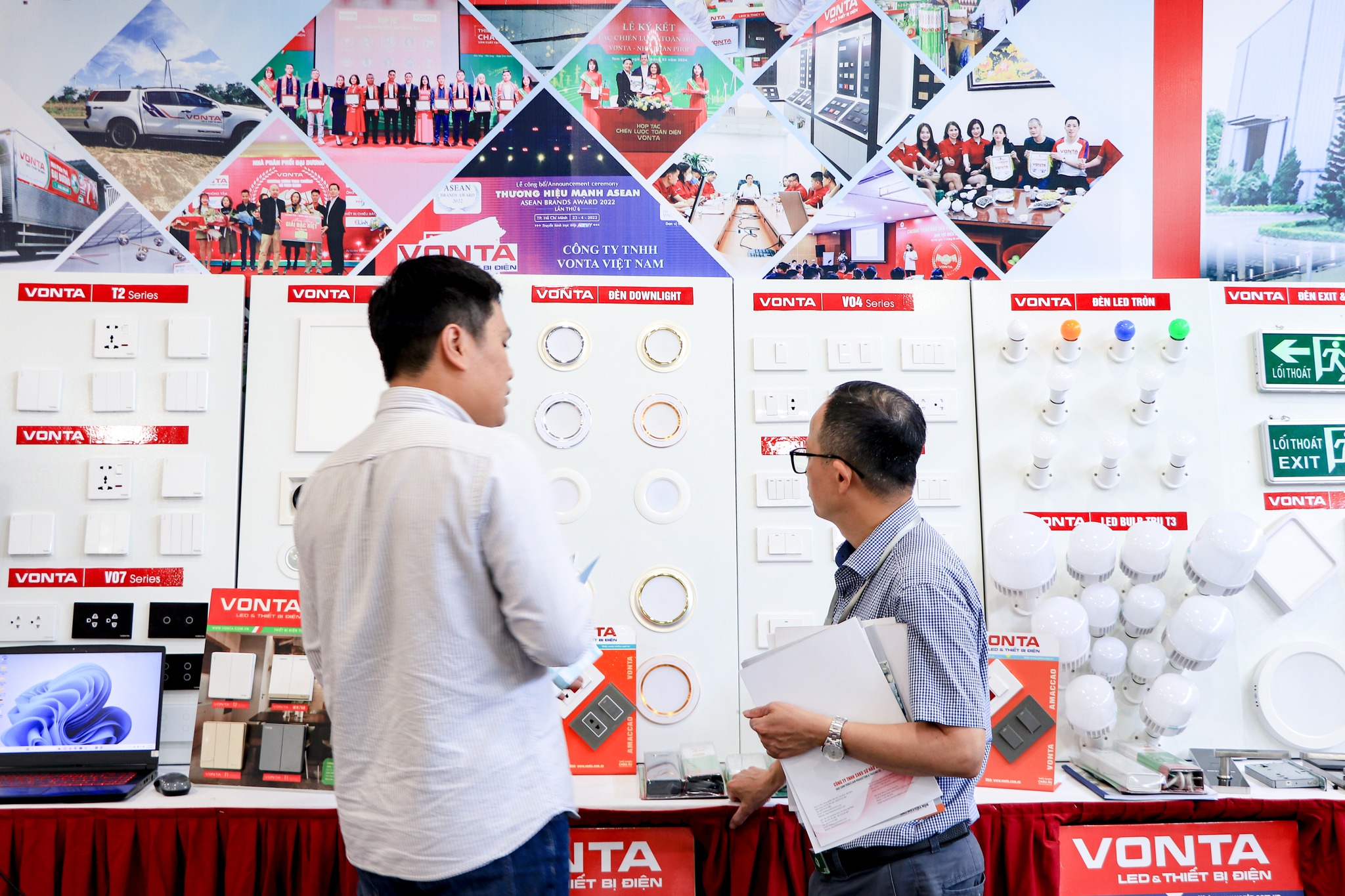 Không gian trưng bày sản phẩm của VONTA đã thu hút được sự quan tâm của các Đại biểu, các đối tác tới thăm quan triển lãm trong khuôn khổ của Hội thảo. Với lợi thế về năng lực sản xuất, chất lượng sản phẩm và Hệ thống phân phối trên Toàn Quốc – các sản phẩm của VONTA đã vinh dự được góp mặt trong nhiều dự án quan trọng trên toàn quốc.
